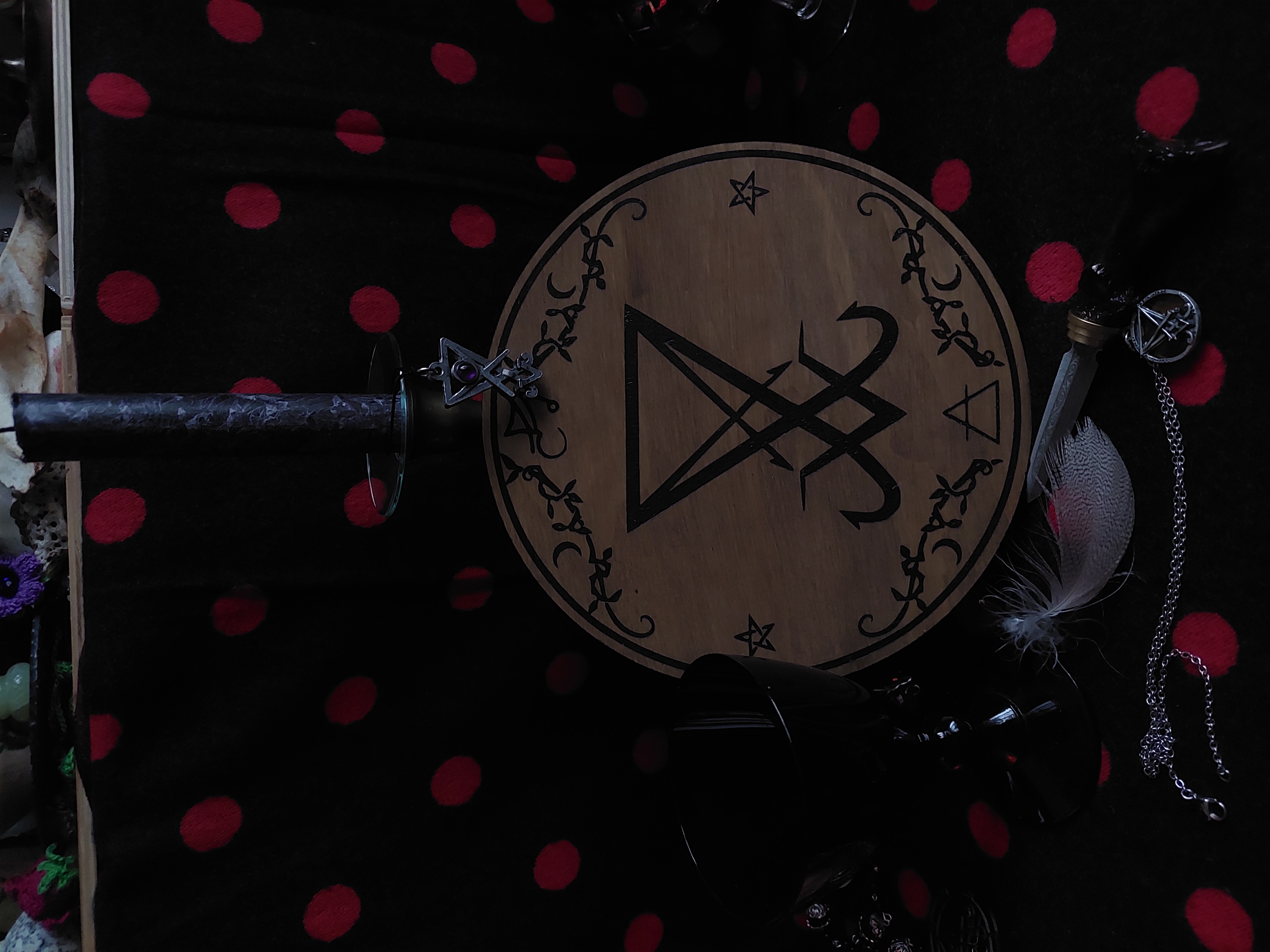 Ornement d'autel sigil de Lucifer en bois (36 EUR) star star star star star 5.0/54 notes - 4 avis