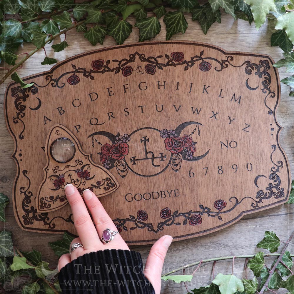 Commande personnalisée Planche ouija en bois ornée d'un pentacle et de roses