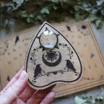 Grâce à cette planche ouija, laissez la sagesse des corbeaux vous guider durant vos séances de spiritisme Cette planche ouija en bois a été entièrement réalisée artisanalement. Les motifs gravés dans le bois font référence à l'arbre de vie et aux corbeaux Hugin et Munin, les messagers d'Odin.