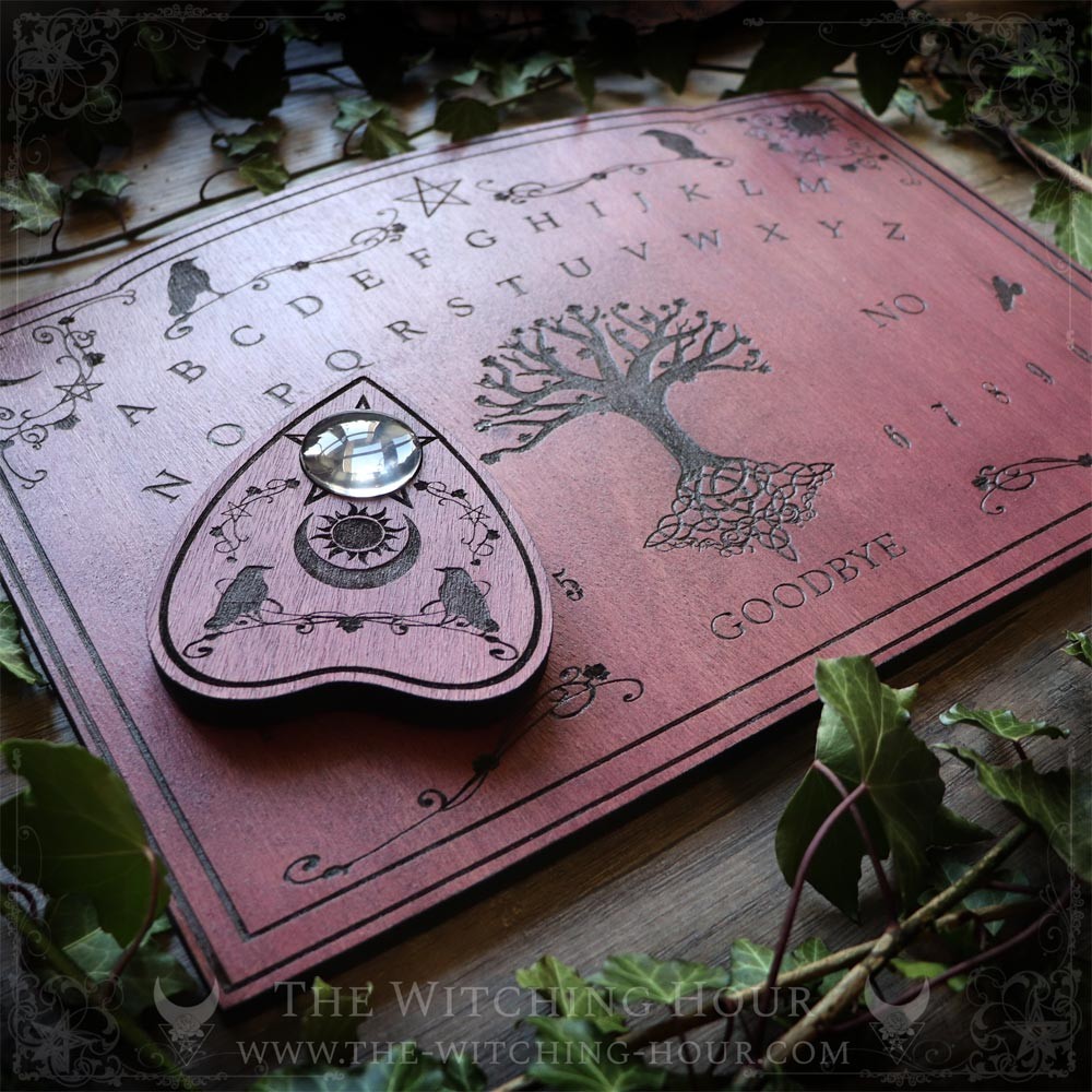 Grâce à cette planche ouija en bois, laissez la sagesse des corbeaux vous guider durant vos séances de spiritisme. Entièrement réalisée artisanalement en bois gravé, peint et vernis. Les motifs font référence à l'arbre de vie et aux corbeaux Hugin et Munin, les messagers d'Odin.