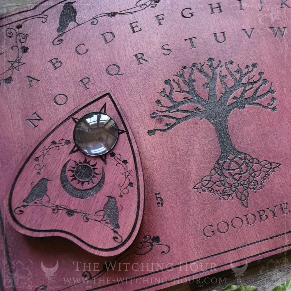 Cette planche ouija en bois s'orne de l'arbre monde Yggdrasil de la mythologie nordique, symbolisant la vie, la mort et la renaissance. Odin s'est pendu à l'Yggdrasil durant neuf jours et neuf nuits, afin d'acquérir les secrets des runes.