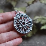 For this pendant, I was inspired by the rose window of the Church of Saint-Sever in Rouen, but also by that of Notre Dame Cathedral in Amiens, in the center of which is a magnificent inverted pentagram.