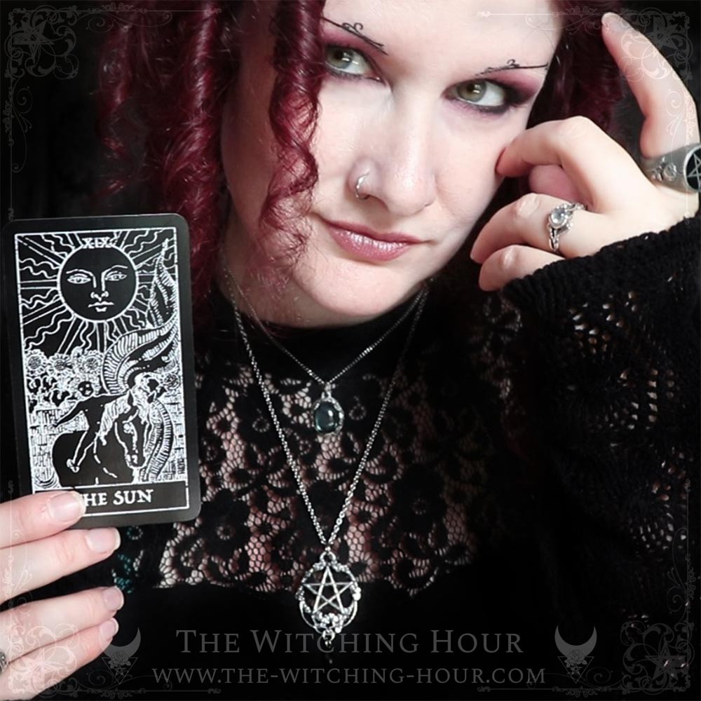 This pendant features a pentacle at the center of elvish-inspired interlacing ivy leaves. A small drop of synthetic crystal embellishes the bottom of the pendant, giving it a delicate, feminine touch.