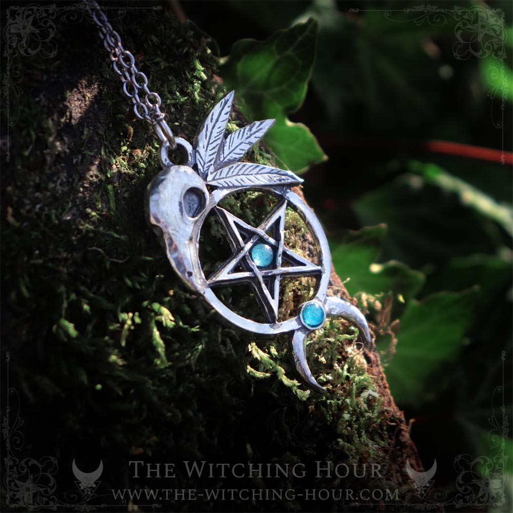 Pentagram and raven skull necklace