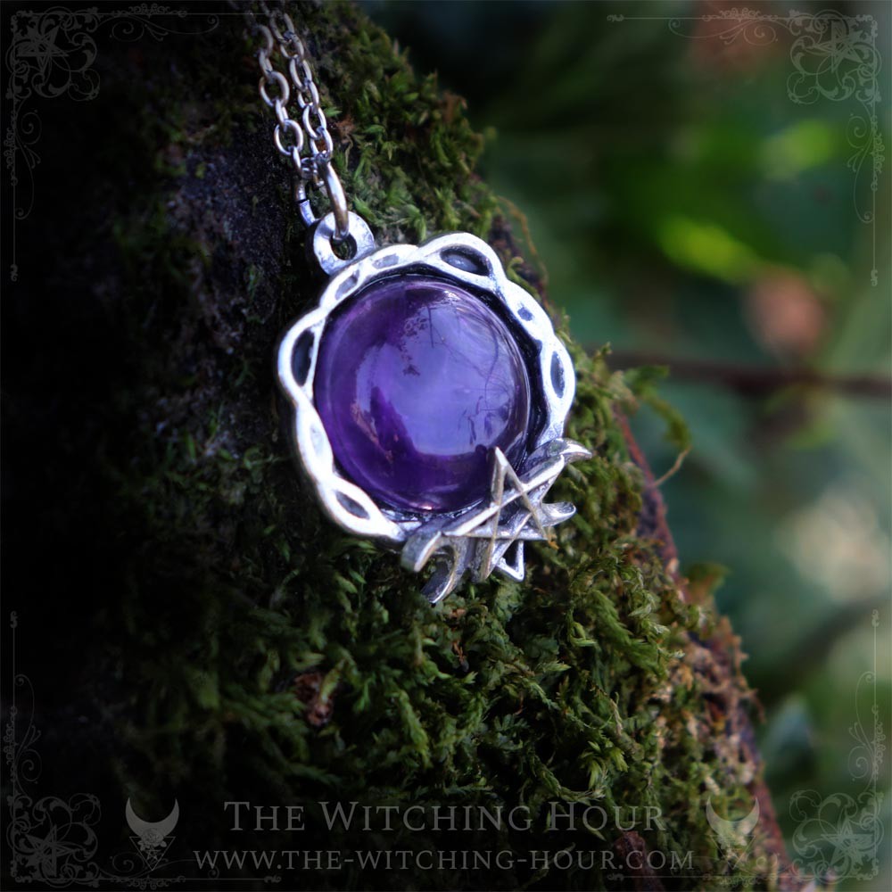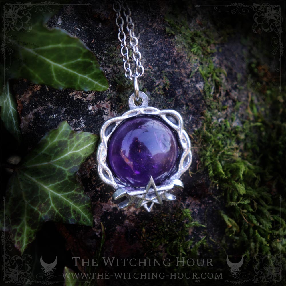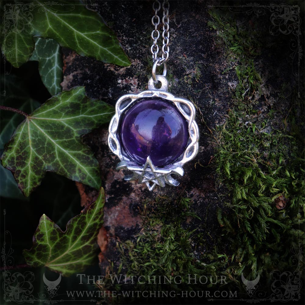 This pentagram necklace is adorned with a large natural gemstone that you can choose via the drop-down menu. The pentagram symbolizes the union between the mind and the natural elements (water, air, earth and fire).